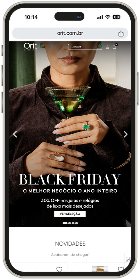 Orit Secodhand é uma marca líder na compra e venda de joias e relógios de luxo secondhand. Na Black Friday desse ano, o desafio conseguir comunicar o desconto sem perder a elegância, mantendo o posicionamento dentro o mercado de luxo e não ficar parecido com o varejo, apesar dos preços serem bastante competitivos.