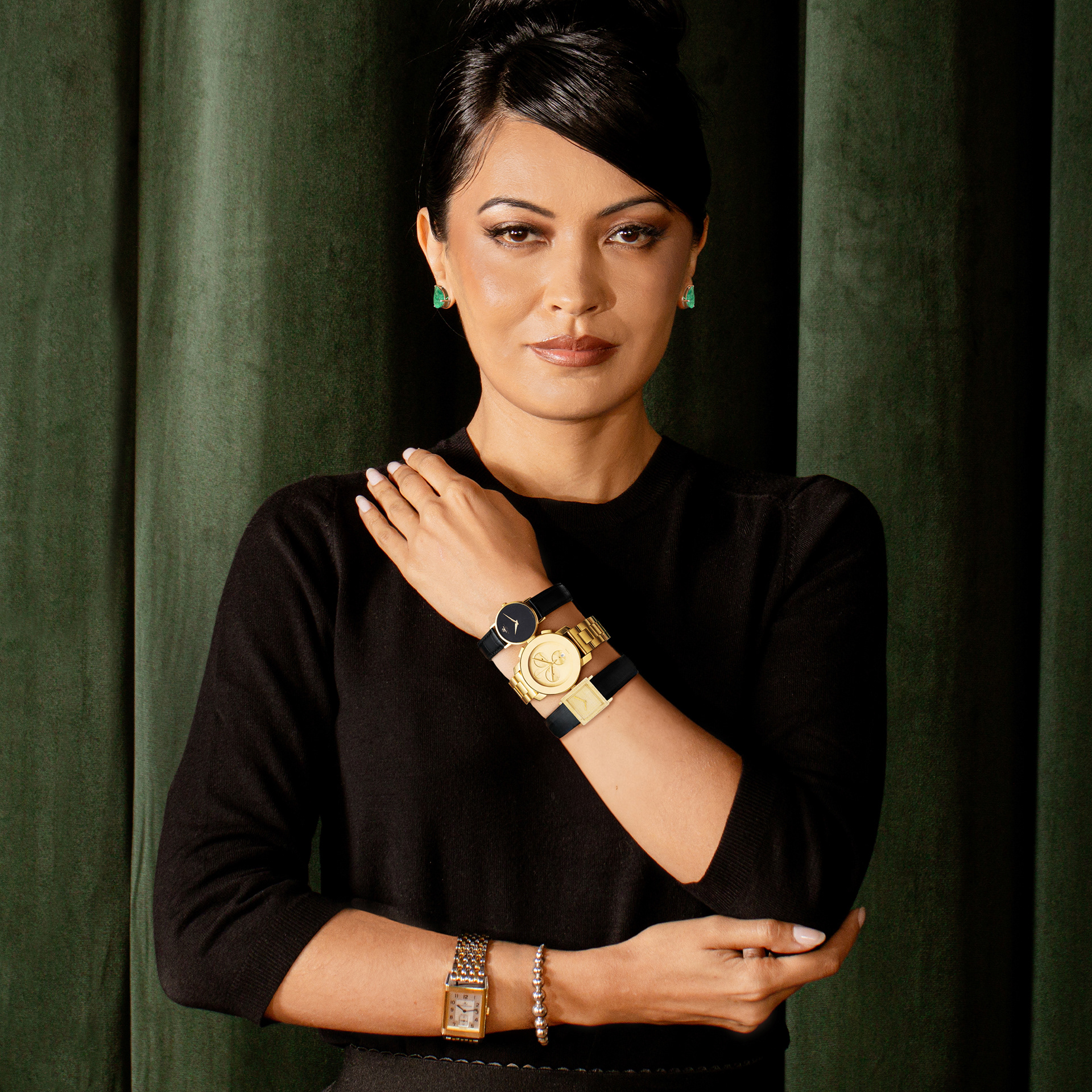 Com o shooting criado, selecionei as fotos e montei o feed do Instagram para que ele ficasse harmônico, alternando entre fotos de um único produto no fundo preto e fotos da modelo usando várias joias e relógios. Dessa forma, o feed conseguiu mesclar tanto o produto em detalhes, quanto a brincadeira que a marca sempre faz em misturar joias, diferentes tipos de ouro etc.